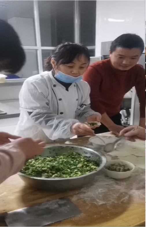 晚上则是主管们的聚餐,由彭总亲自作陪,为节日里依然奋斗在生产一线不能回家的管理者们送上节日的祝福。大家一起包水饺,分工明确,默契配合。饺子的形状如同元宝,也预示着我们惠民和美公司在即将到来的一年中事业肯定会蒸蒸日上,发展越来越好。