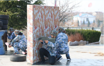 接下来可是一项大规模的活动,真人版的CS野战游戏。大家都在认真做准备动作,身穿作战迷彩服,手持镭射枪。到战场上,大家都精神抖擞,整装待发,心无旁骛的投入战斗中,大家穿梭在障碍物后,展现各种队形阵势、个人技巧,完全展现出了一个士兵、将领的风范。大家时而躲避在掩体后面,时而迅速的冲到最前面,两支队伍都势均力敌,经过一番激烈的战斗后,二队略胜一筹,取得此次活动的胜利。当然,另一只队伍也接受了相应的惩罚,在欢声笑语中,此项活动拉上了帷幕。